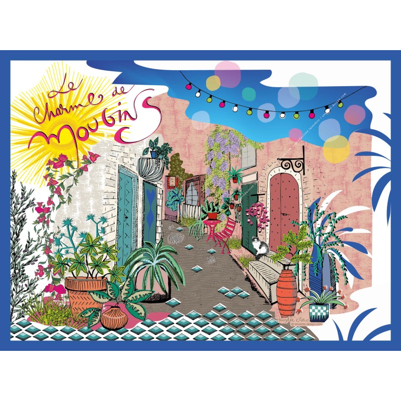 I enjoy mixing techniques and subjects with regional designs inspired by the South of France, drawings from travel memories and vegetal influences. In love since forever with patterns and colours, in the blink of an eye I love to make you dream.